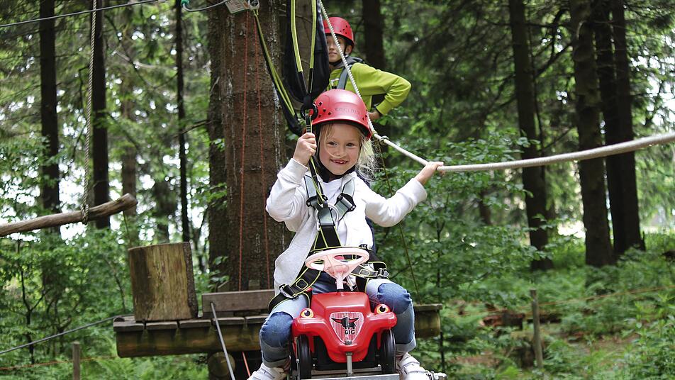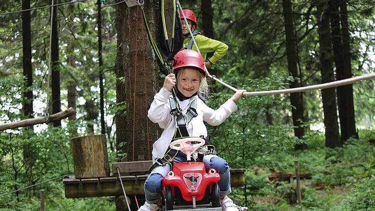 Wer vor anspruchsvollen Hindernissen in luftiger Höhe nicht zurückschreckt, der ist im Kletterwald genau richtig. Acht verschiedene Parcours in bis zu acht Meter Höhe bieten alles, was das Kletterherz höher schlagen lässt! Für die kleinen Gäste gibt es einfachere Kletterübungen in Bodennähe. Hier geht's los ab vier Jahren in Begleitung eines Erwachsenen oder ab acht Jahren alleine.