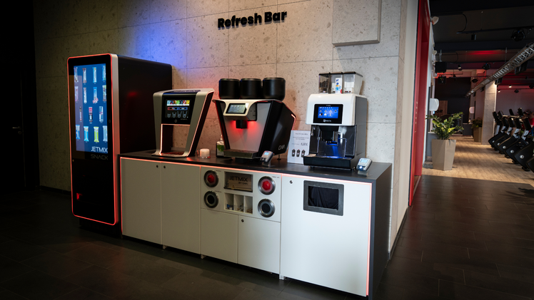 Erfrischende Pausen nach dem Training – die moderne Refresh Bar bietet Proteinshakes, Mineralgetränke und Snacks für neue Energie. Foto: clever fit Bamberg