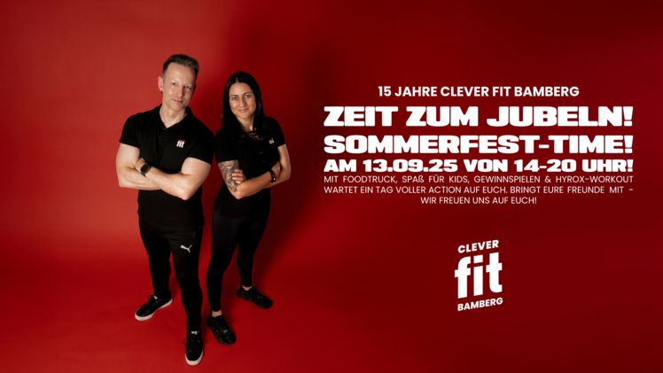 Das Team von clever fit Bamberg lädt zum großen Jubiläums-Sommerfest am 13. September ein. Foto: clever fit Bamberg