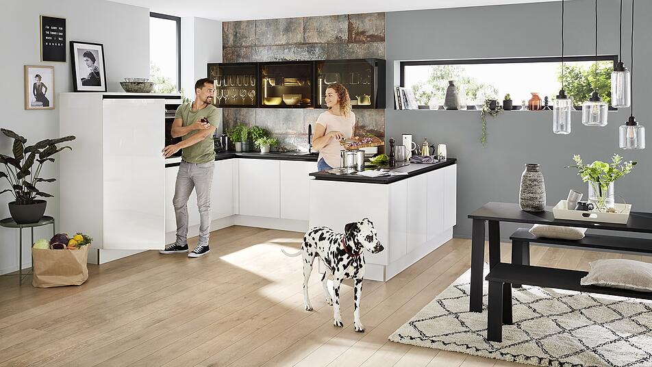 In einer offenen Gestaltung entfaltet eine schwarze Küche ihre gesamte Wirkung und präsentiert ihre edle Optik. Sowohl Landhausküchen als auch klassische Designküchen können in Schwarz überzeugen und sorgen – kombiniert mit weiteren Materialien wie Holz oder Stein – für eine wohnliche Atmosphäre. Auch gut platzierte Akzente in intensiven Farben wie Rot oder Gelb sorgen für eine große Portion Gemütlichkeit.