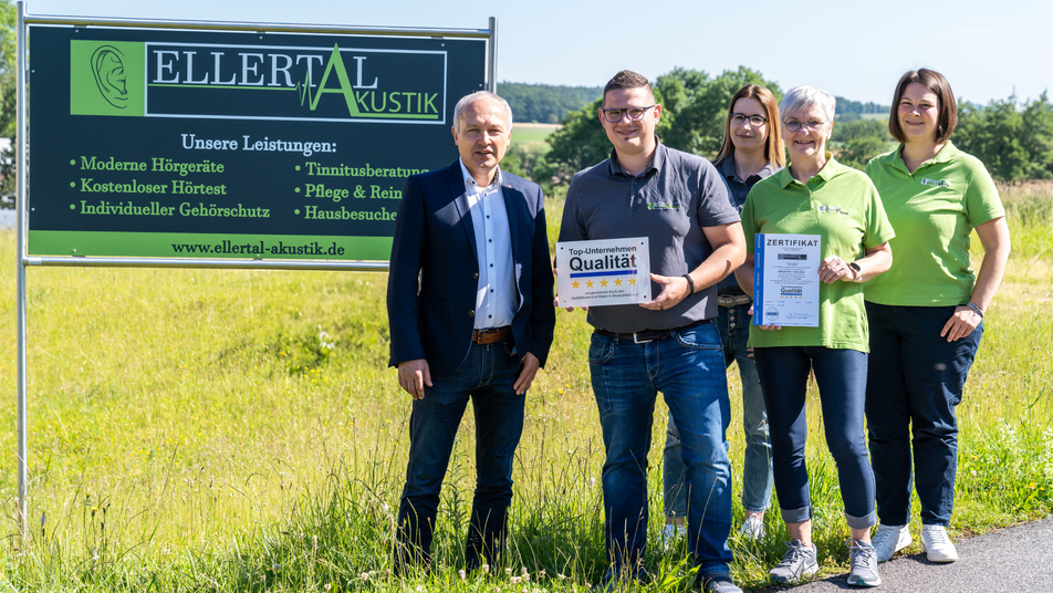 Ellertal Akustik wurde mit dem Siegel "Top Unternehmen Qualität QVHD" vom Qualitätsverbund Hören in Deutschland e.V. ausgezeichnet. Hinter der Auszeichnung steckt vor allem eines: das Team. Mit viel Herzblut, Fachwissen und echter Leidenschaft für gutes Hören setzt jeder Einzelnen von ihnen täglich dafür ein, dass Kunden die bestmögliche Versorgung bekommen.