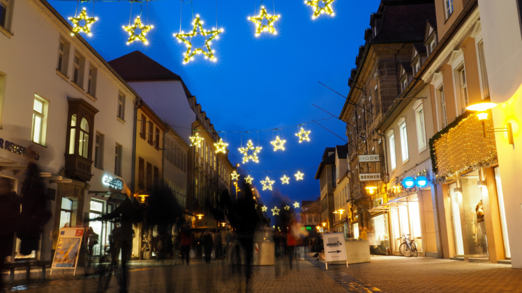 Nach der Arbeit noch in der Stadt einkaufen zu gehen, ist dir zu knapp und zu stressig? Am Freitag, 29. November 2024, hast du dank der Langen Einkaufsnacht mehr Zeit dafür. Denn an diesem Tag haben die Geschäfte in der Innenstadt bis 22 Uhr geöffnet. Der letzte Freitag im November hat sich in Erlangen mittlerweile als "Black Friday" etabliert, an dem Besucherinnen und Besucher besondere Schnäppchen abstauben und Rabattaktionen nutzen können. Also die perfekte Gelegenheit, um die ersten Weihnachtsgeschenke einzukaufen!