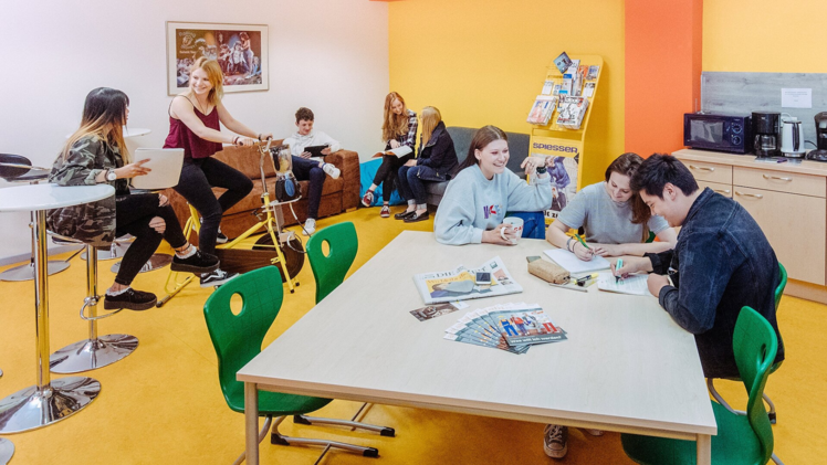 Im Pausenraum kann man sich gut ausruhen und es gibt auch eine Kaffeemaschine. Foto: FOS Fränkische Schweiz