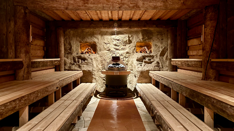 Tauche ein in eine Entspannungsoase aus Naturstein und Muschelkalk. Hier findest du Regenduschen, Kneipschläuche und einen Eisbrunnen. Der Star des Wellnessbereichs: die 100 Grad heiße Stollensauna. Zwischen finnischem Holz, Edelsteinen und Kunstfels kannst du die Seele baumeln lassen. Das Herzstück der Stollensauna ist der Saunaofen mit Kupferkessel und Birkensud, der dieses Saunaerlebnis zu etwas ganz Besonderem macht.