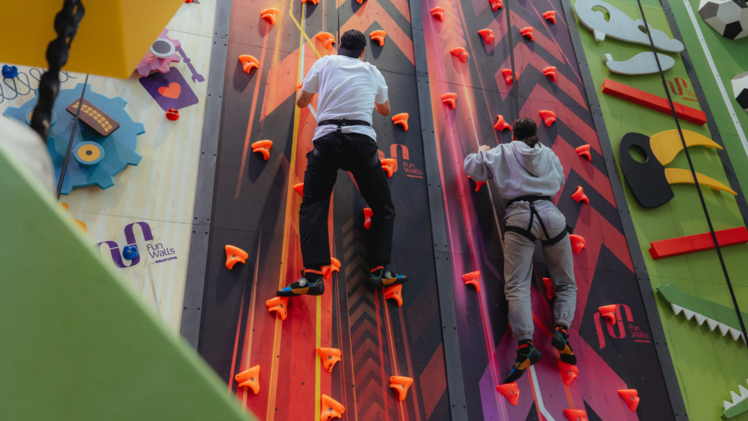 Lust auf 100 Prozent Nervenkitzel? Dann entdecke jetzt die Climbing-Zone! An insgesamt 18 verschiedenen Fun-Walls mit acht Metern Höhe warten gesicherter Kletterspaß und Spannung auf dich. Die unterschiedliche Haptik, fröhlichen Farben und bunten Kletterelemente und Griffe machen deinen Kletterausflug zum Erlebnis. Mutige können vom acht Meter hohen Sprungturm springen und sich an einen Boxsack klammern. Genieße jetzt den ultimativen Kletterspaß in der Funtasy World!