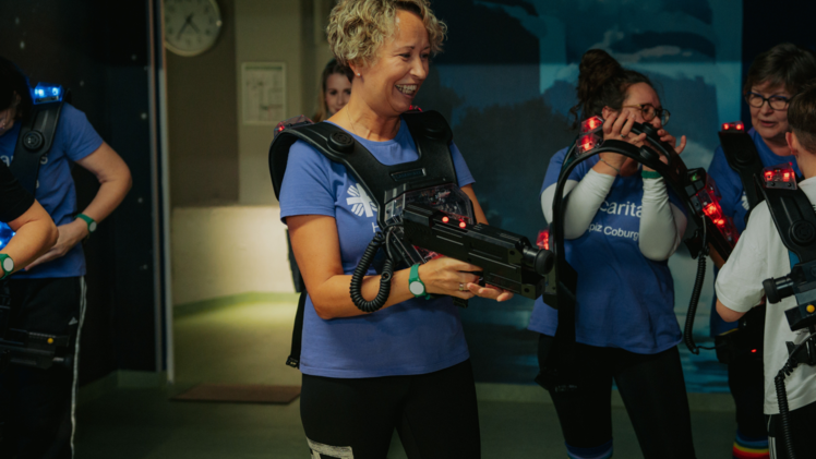 Ob mit der Familie, Freunden oder der Arbeitsgruppe, beim Lasertag könnt ihr euren Teamgeist stärken und eure Treffsicherheit unter Beweis stellen. Foto: Funtasy World Rödental