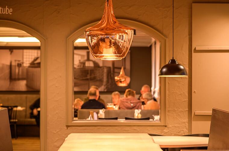 Dabei fing alles mit einem kleinen Wunsch an: „Papa, wir brauchen neue Stühle“, hat Juniorchefin und Hotelbetriebswirtin Lisa Höhn zu ihrem Vater gesagt. Die erste Musterbesichtigung von Stühlen und Polsterstoffen fand schon Anfang 2020 statt. Corona hat die Planungen zwar fürs Erste lahmgelegt, doch mit der Pandemie kamen weitere Anforderungen. Man wollte das geänderte Gästeverhalten – nicht mit so vielen fremden Gästen am Tisch sitzen – bei den Planungen berücksichtigen Das hieß: kleinere Tische, die man dann im Notfall zusammenschieben kann. Mit der neuen Tischeinteilung haben die alten Lampen nicht mehr gepasst – es mussten neue her! Gleichzeitig hat man auch ein neues, feststehendes Frühstücksbuffet für die Hotelgäste mit eingeplant. Und wie das nun mal ist bei Renovierungsarbeiten: die Baumaßnahmen wuchsen an und neue Projekte kamen hinzu. Neue Fenster, neue Heizung, neue Theke, neue Zapfanlage, neue Rezeption.