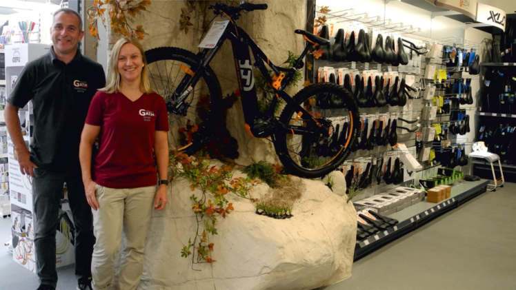 Freuen sich schon auf die Jubiläumsgäste: Christian und Sonja Gath stehen den Kunden auch bei allen Fragen rund um Fahrräder und E-Bikes zur Seite. Foto: Gath Elektrofachmarkt