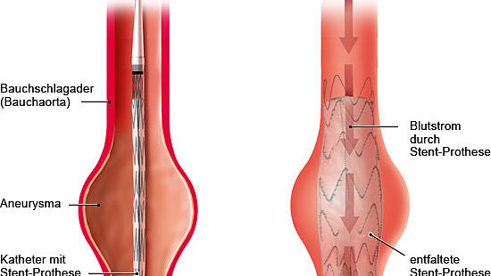 endovaskulär mit Stent-Prothese oder offen mit künstlichem Gefäßstück