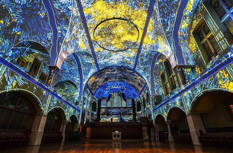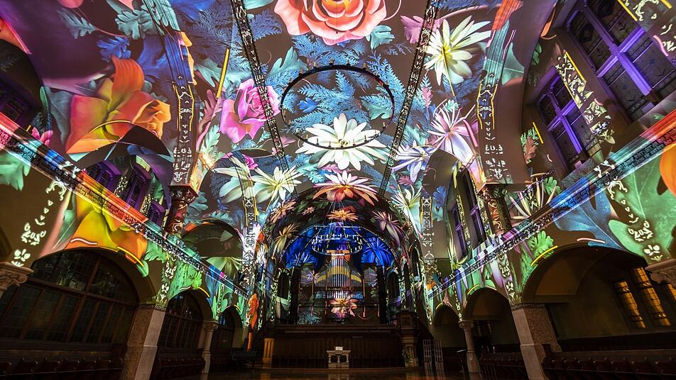 Unter dem Titel "Immersive Art" verschmilzt Lasertechnologie mit Video-Mapping und nimmt den Betrachter mit auf eine meditative Reise. Begleitet von Musik und beeindruckenden Animationen verspricht die multimediale Show eine Auszeit vom Alltag und bringt Licht in die Herbsttage. Neben den Kirchenbänken kannst du es dir auch auf Sitzsätzen bequem machen und in die Geschichte eintauchen.