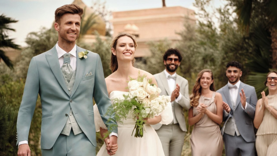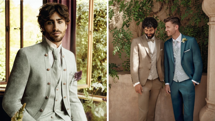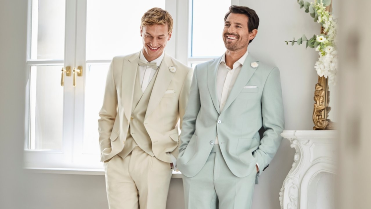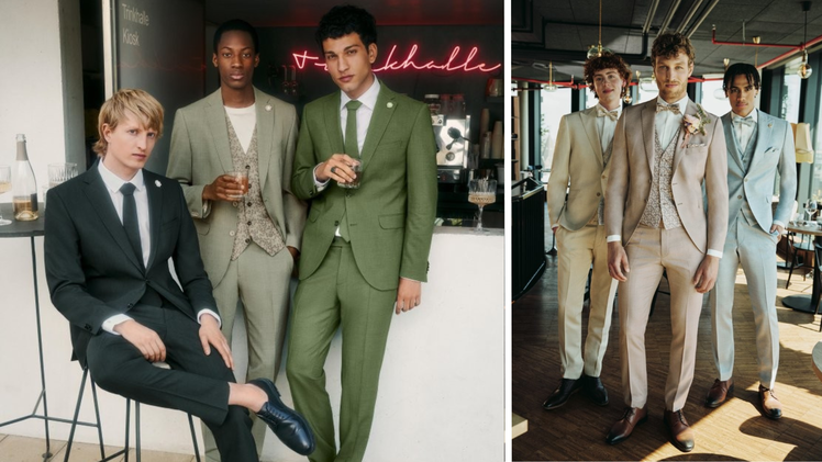 Ein Meer aus Farben: Anzüge erstrahlen in sanften Pastelltönen, wie Rosé, Salbei und Hellblau. Aber auch sanfte Erdtöne, wie Beige und Braun, sind gefragt.