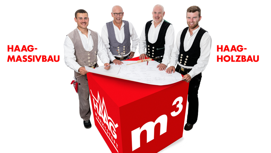Dieter und Jürgen Haag freuen sich mit ihren beiden Söhnen darauf, maßgeschneiderte Antworten auf Bau-Vorhaben und Wohn-Wünsche zu geben ...