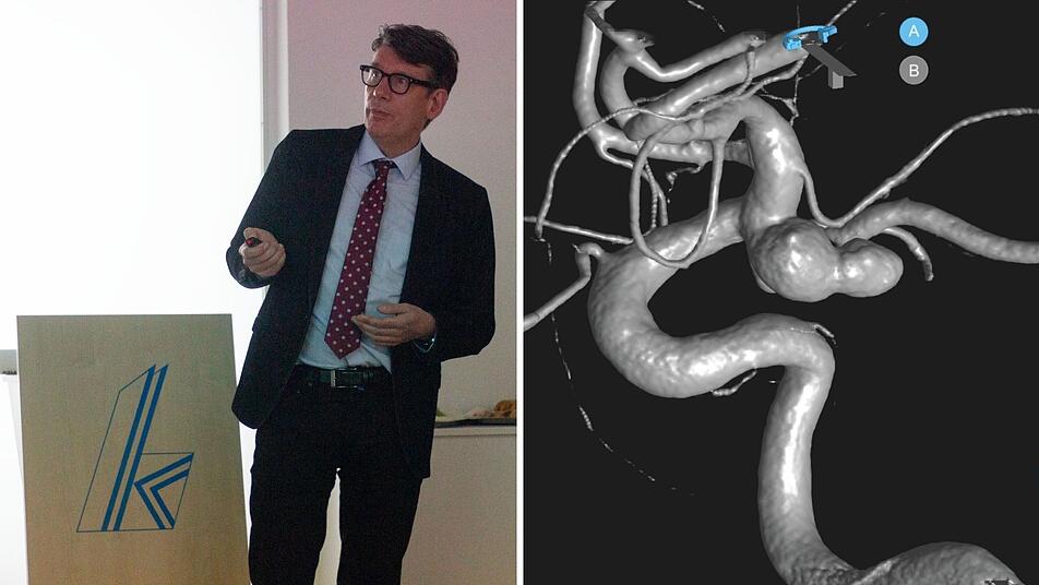 "Bei einem Aneurysma handelt es sich um eine ballonartige Ausdehnung einer Arterie. Diese kann durch Schwachstellen in der Gefäßwand entstehen. Das geht so lange, bis es letztendlich zur Ruptur, also zum Platzen, kommt, und dann wird es lebensgefährlich", erläutert Leitender Arzt des Institutes für Diagnostische und Interventionelle Radiologie und Neuroradiologie am Klinikum Kulmbach Prof. Dr. Schulte-Altedorneburg. Besonders gefährlich wird es, wenn ein Aneurysma wächst und plötzlich reißt. Eine sogenannte Aneurysmaruptur kann lebensbedrohliche Folgen haben - insbesondere dann, wenn die Hauptschlagader oder Arterien im Gehirn betroffen sind.