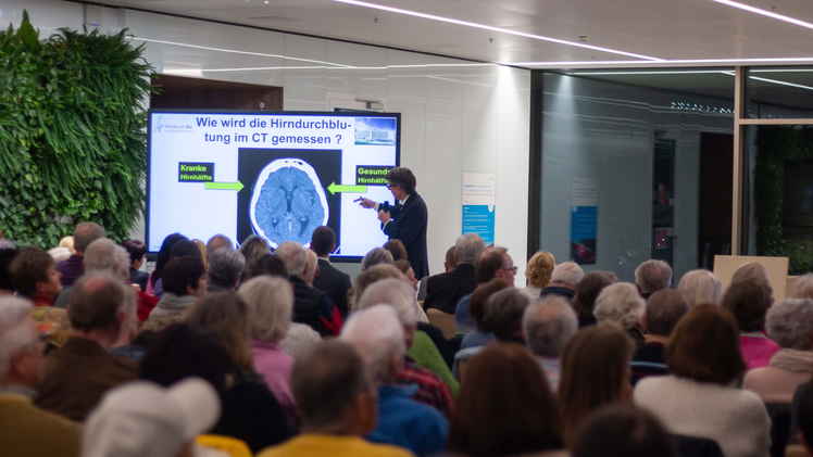 Gemeinsam mit Professor Dr. Gernot Schulte‑Altedorneburg, Leitender Arzt der Neuroradiologie, und Dr. Christian Konhäuser, Leitender Arzt der Neurologie, werden moderne mikrochirurgische und minimalinvasive Behandlungsverfahren angeboten und im Rahmen der Patientenveranstaltung am 28. April 2026 verständlich erläutert.