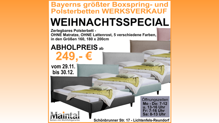 Polsterbett ab 249 €: Das Maintal Betten Weihnachtsspecial