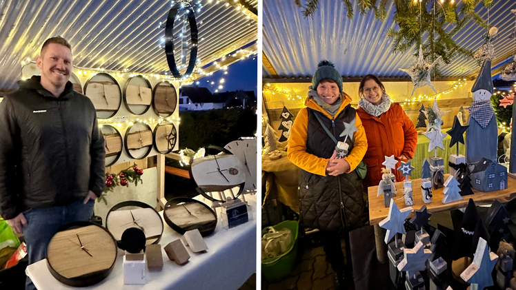 Stände & Geschenkideen: Entdecke handgemachte Stollen, Plätzchen, Adventsgestecke, Liköre, Weihnachtsdeko, Gestricktes wie Mützen, Schals, Socken und Handschuhe, bunte wasserdichte Regenmäntel, Deko- und Geschenkartikel aus Gießkeramik, veredelte Holz- und 3D-Druck-Produkte, Holzuhren, Flaschenträger und viele weitere liebevoll gefertigte Unikate.