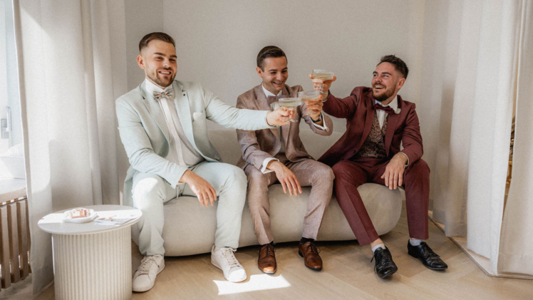 Auch der Bräutigam findet bei MURK natürlich das passende Outfit. Die Anzugsabteilung ist groß und vielseitig, sodass auch hier jeder Wunsch erfüllt werden kann. Das Beste: Das Fachpersonal kann darauf achten, dass der Anzug auch zum Kleid passt, ohne dass das Brautpaar das Outfit des Anderen vorher sieht.