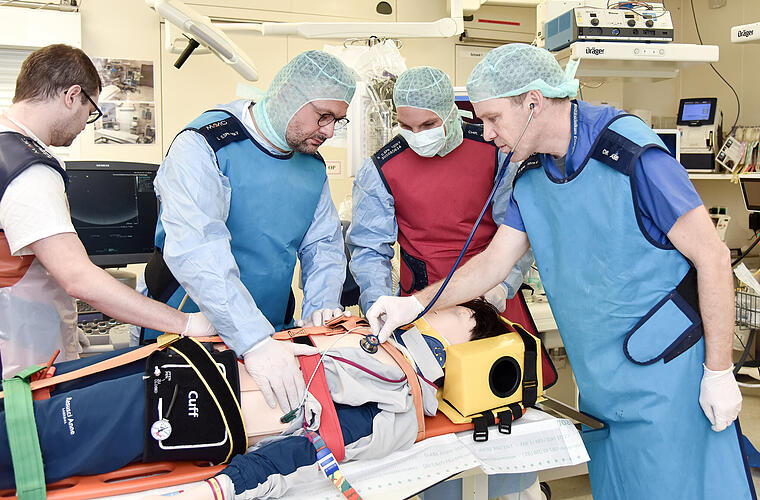 Interdisziplinäre Patientenversorgung: Im Universitätsklinikum Erlangen trainiert ein Team aus Unfallchirurgen und Anästhesisten