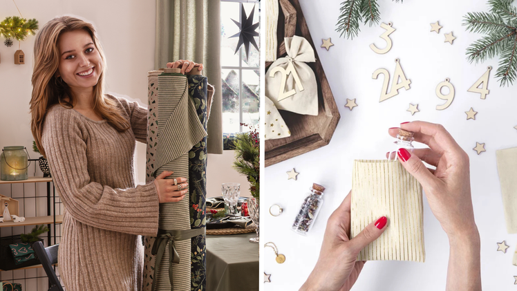 Die Weihnachtsstoffe schmücken aber nicht nur als saisonale Tischwäsche, Vorhänge, Kissen und Co. dein Zuhause. Mit ihnen kannst du wunderbar basteln, Geschenke einpacken und verzieren.