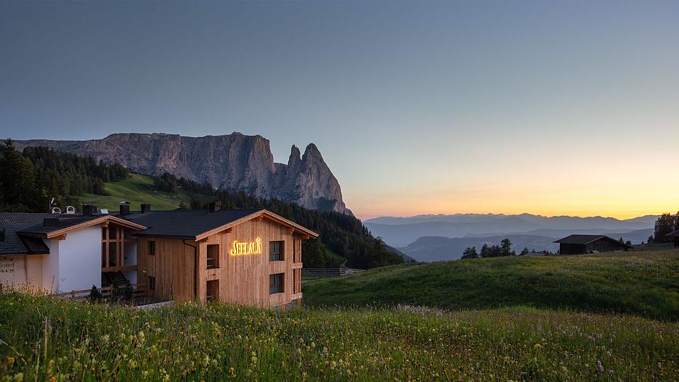 Ruhe und Gelassenheit inmitten eines atemberaubenden Naturpanoramas, etwas Luxus und zugleich ein familiärer und gemütlicher Charme: Dafür steht das 4-Sterne Hotel Seelaus auf der Seiser Alm. Das Hotel liegt auf 1.800 Meter ü.d.M. direkt an den schönsten Wanderwegen der Dolomiten. Das Hotel verfügt über 30 Zimmer und Suiten, die höchsten Komfort und einen Balkon mit tollem Ausblick in die Natur bieten. Auch kulinarisch sind Sie bestens versorgt. Die Speisekarte bietet regionale Gerichte und leichte mediterrane Kost. Der Küchenchef ist außerdem für seine selbstgemachten Kuchen, Teigtaschen und sein leckeres Frühstücksgebäck bekannt. Nach einem langen Tag in der Natur verwöhnt das Restaurant seine Gäste mit unvergesslichen Genussmomenten, das 5-Gänge-Menü mit Antipasti- und Salatbuffet ist ein echtes Highlight.