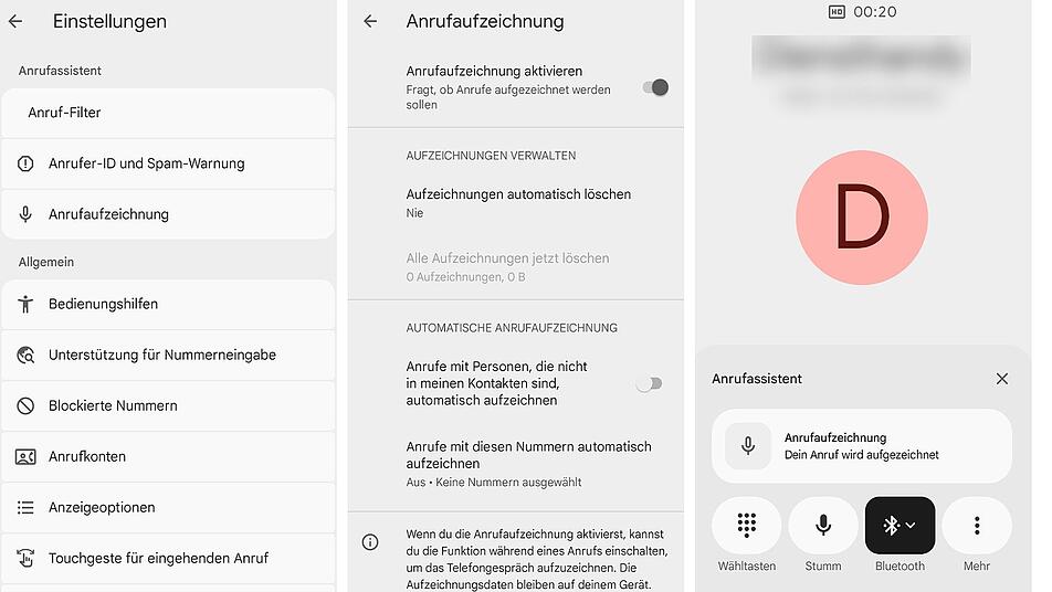 Wer die aktuelle Beta-Version der Telefon-App nutzt, findet die Anrufaufzeichnung in den Einstellungen der App unter "Anrufassistenten". Auch einige Pixel-Handys scheinen die Funktion außerhalb des Beta-Tests schon erhalten zu haben. Wie "heise" berichtet, wurde die Option auf dem Pixel 10 Pro beim Anruf angeboten. Bei unserem Test mit einem Pixel 8 wurde nicht aktiv auf das neue Feature hingewiesen, die Einstellung war einfach plötzlich verfügbar. Einmal aktiviert, wird sie bei folgenden Telefonaten angeboten.