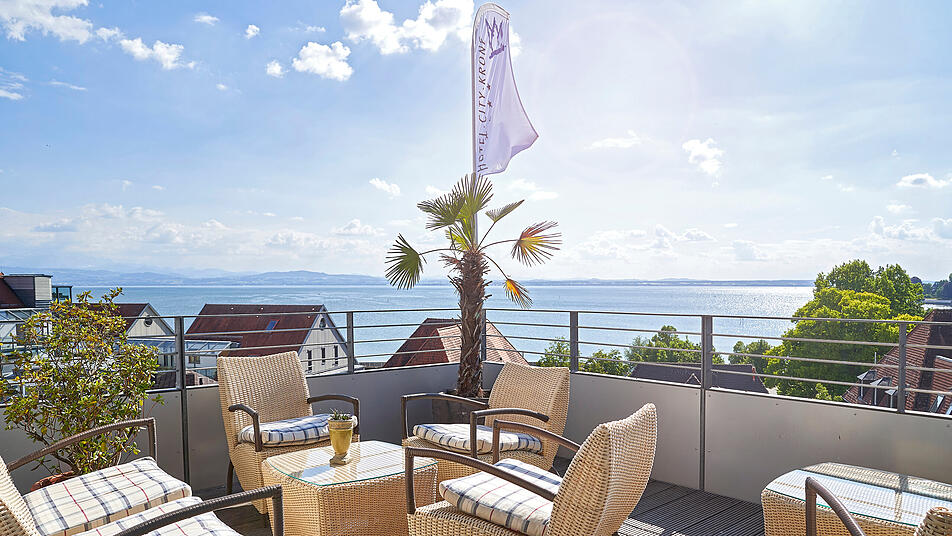 "Ob Business- oder Urlaubs-Aufenthalte, die seit Ende 2022 den Schwerpunkt bilden, wir bieten für jeden Anlass maßgeschneiderte Lösungen und Angebote an" ergänzt der ehemalige Segel-Leistungssportler. Stadt, See und nahe Alpen bieten ganzjährig Möglichkeiten das Hotel City Krone zu besuchen. Zu den Höhepunkten gehört neben einer Dachterrasse, der 550 m2 große Wellnessbereich mit Indoor-Pool, Saunalandschaft, Ruheareal und Massage-Angeboten sowie der Barbereich "Die BA.R". Das reichhaltige Frühstücksangebot lässt ebenfalls keine Wünsche offen.