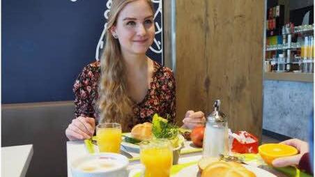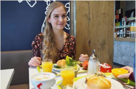 Das ibis budget Bamberg bietet den Gästen ein Frühstücksbuffet mit reichhaltigem und abwechslungsreichem Angebot. Neben frischen Backwaren kann das Frühstück auch mit Obst, Müsli und Säften punkten. Zudem steht ein Kaffeevollautomat bereit, der Getränke wie Cappuccino und heiße Schokolade auf Knopfdruck frisch zubereitet. Die Käse- und Wurstauswahl ist ausgewogen und schmackhaft - zudem arbeitet das Hotel hier mit lokalen Anbietern zusammen und serviert daher regionale Ware. Insgesamt wird dem Gast ein ausgewogenes und abwechslungsreiches Frühstück geboten, das er sich ganz nach Belieben individuell zusammenstellen kann. Zudem gilt beim ibis budget Frühstück: all you can eat. Von Montag bis Samstag beginnt die Frühstückszeit bereits um 6.30 Uhr und endet um 10 Uhr.