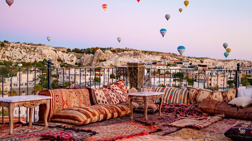 Kayseri ist die Hauptstadt der gleichnamigen Provinz in der Zentraltürkei. Die Stadt liegt am Fuß des inaktiven Vulkans Erciyes und ist der ideale Ausgangspunkt, um die Region Kappadokien zu entdecken. Die einmaligen Fotomotive und außergewöhnlichen Unterkünfte in der von skurrilen Felsformationen geprägten Landschaft ziehen Influencer*innen aus aller Welt an – und lassen sich perfekt auf einer der berühmten Heißluftballon-Touren erkunden.