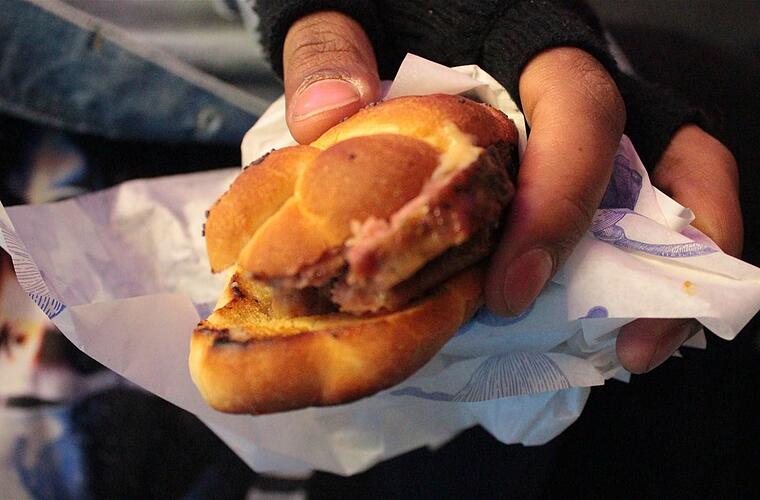 Lassen Sie sich zunächst von der Metzgerei selbst bezaubern: die Theke ist randvoll mit hochwertigem Fleisch, die Metzger sind bärtig und sehr charmant und man kann ihnen durch eine pink gefärbte Scheibe bei der Arbeit zusehen. Im Hinterzimmer kann man einen groben Hackstock, reihenweise scharfe Messer und fingerfertige Metzger beim Zerlegen teurer Fleischstücke sehen. Das Nase Maso besitzt einen kleinen Imbiss, in dem man sich sein Bier an einem kleinen Hahn selbst zapfen kann, die Metzgerei und einen Laden, in dem man das herrliche Fleisch kaufen kann. Allein wegen des tollen Einblicks in das traditionelle Metzgerhandwerk lohnt sich ein Besuch, aber der eigentliche Grund, warum es die Massen zu Nase Maso zieht, ist ihr deftiger Hackbraten im Brötchen. Das mag zunächt etwas schlicht klingen, aber dieser Hackbraten wird Sie umhauen.