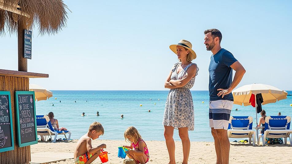 Eine vierköpfige Familie plant eine Woche Mallorca-Urlaub im Juli 2026. Neben den gestiegenen Hotelpreisen kommen erhebliche Zusatzkosten vor Ort hinzu: