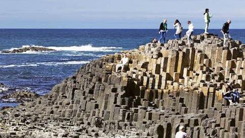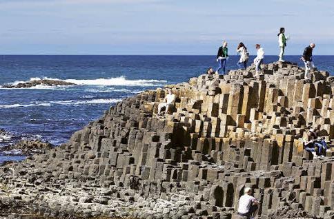Nur wenige Kilometer weiter wartet mit dem Giant's Causeway ("Damm der Riesen") ein beeindruckendes Naturschauspiel. Die Unesco-Welterbestätte besteht aus etwa 40 000, zum größten Teil sechseckigen Basaltsäulen, die bis zu zwölf Meter hoch sind. Der Legende nach hat ein Riese sie aus den Felsen gerissen, um einen Damm zu bauen. Laut Geologen sind sie jedoch vor 60 Millionen Jahren durch die Abkühlung heißer Lava entstanden.