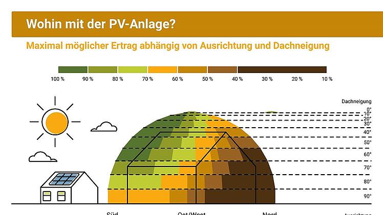 Entscheidend ist die Frage, ob das eigene Dach für eine PV geeignet ist und mit welchem Solarertrag zu rechnen ist. Süden oder doch Ost-West-Kombination? Für die optimale Neigung und Ausrichtung solltest du deinen Verbrauch im Blick haben und analysieren. Es gibt eine Zone, in der eine Solaranlage besonders effektiv arbeitet - wir stellen sie vor.