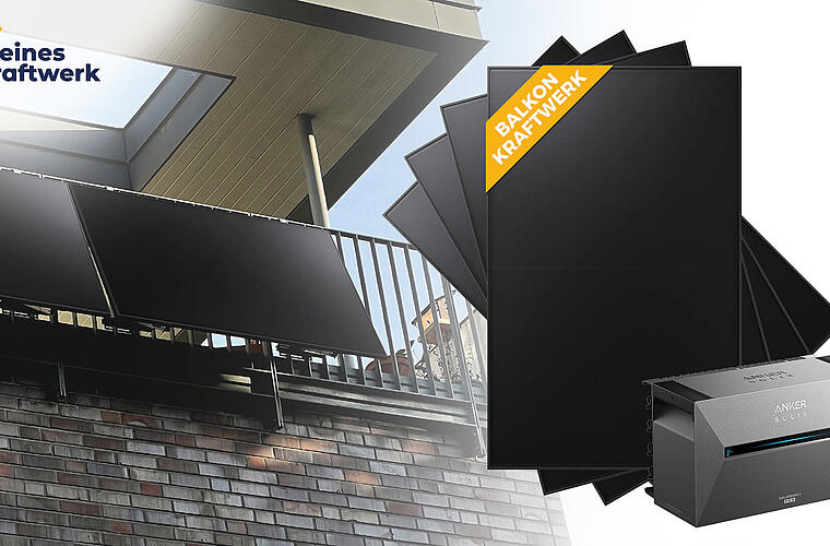 Das Quattro-Set von Kleines Kraftwerk* enthält vier Fullblack 480 Watt PV-Module (bifazial), die All-in-One Anker SOLIX Solarbank 3 E2700 Pro mit integriertem Wechselrichter, ein 3-Meter-Schuko-Anschlusskabel, vier MC4-Solarkabel-Sets (je 3 m), einen MC4-Schlüssel sowie eine deutsche Montageanleitung. Im Setpreis von 1.399 Euro ist der Versand bereits inklusive.