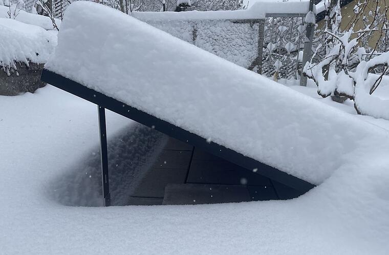 Mini-PV unter dicker Schneedecke: Bei so viel Schnee geht nichts mehr. Doch das ist in Deutschland glücklicherweise die Ausnahme.