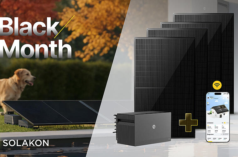 Solakon bietet im Black Month hochwertige Balkonkraftwerke mit Speicher zu stark reduzierten Preisen, ideal für die effiziente Nutzung von Solarenergie.