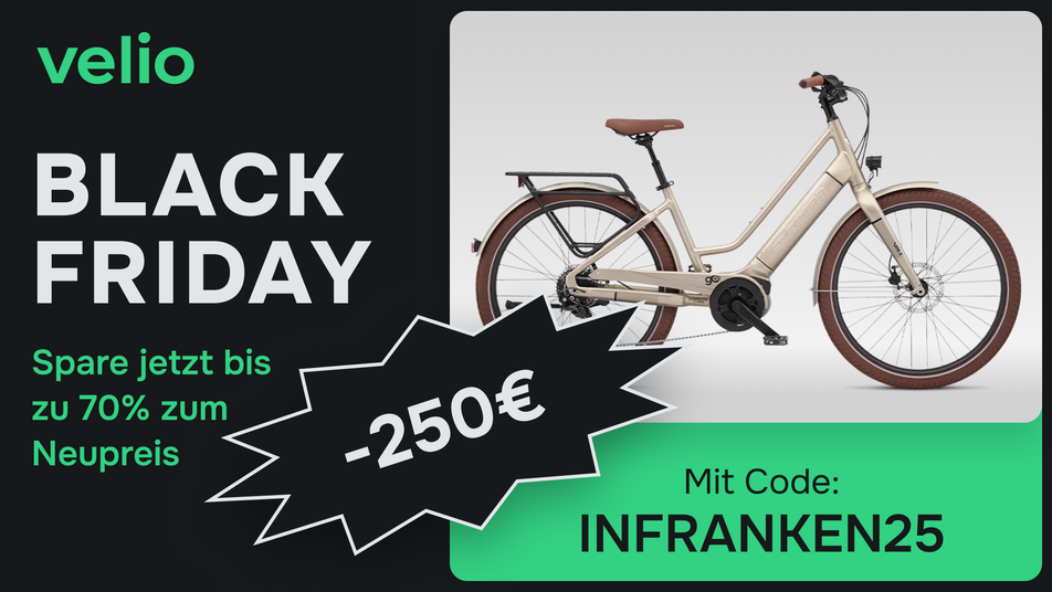 Der Händler mit Sitz in Münster bietet nicht nur geprüfte Premium-Bikes, sondern auch attraktive Deals. Schon vor der Black Week können Kunden mit dem Gutschein "INFRANKEN25" ganze 250 Euro sparen. Damit wird der Einstieg in die Welt der refurbished E-Bikes noch leichter – und das ganz ohne Kompromisse. Wer bisher skeptisch war, ob ein generalüberholtes Rad den eigenen Ansprüchen genügt, sollte jetzt die Gelegenheit nutzen, sich selbst zu überzeugen.