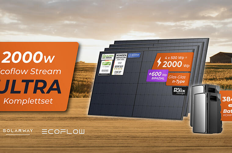 Als letztes Mitglied der EcoFlow Stream Familie wurde das Solarway 2000-Watt-Set Pro mit dem EcoFlow Stream Ultra X* gelauncht. Dieses Set richtet sich an Nutzer, die maximale Leistung und Speicherkapazität für ihr Balkonkraftwerk suchen.