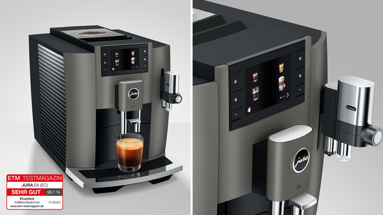 Die JURA E8 Dark Inox: Premium-Kaffeevollautomat für höchsten Genuss – das perfekte Geschenk zu Weihnachten.
