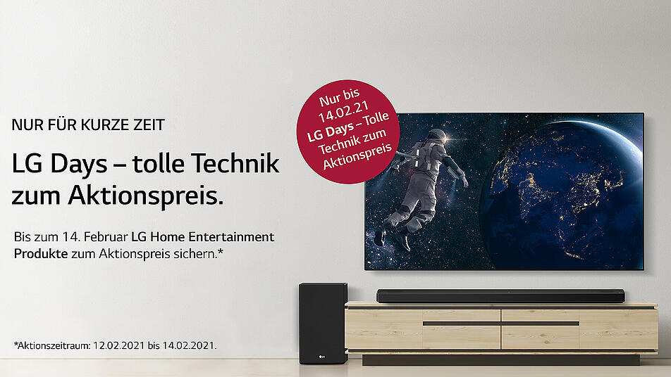 Bei expert in Bamberg kann jetzt wieder bares Geld gespart werden, denn bei den LG Days erhalten Sie tolle Technik zum Aktionspreis.* Schnell sein lohnt sich, denn die LG Aktion läuft nur bis 14. Februar! Alle Geräte können per Click & Collect oder im Onlineshop bestellt werden.