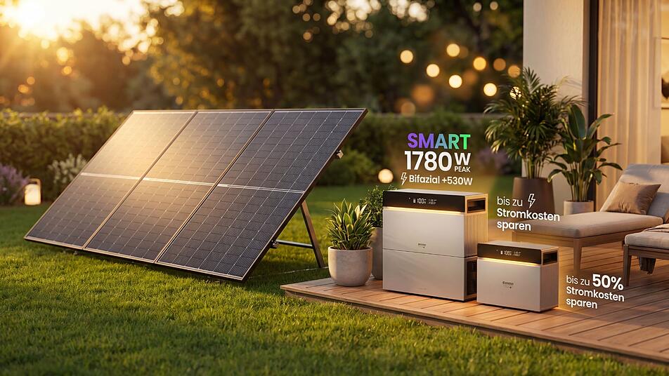 Das Steckersolargerät* ist als Plug-&-Play-Lösung konzipiert und lässt sich ohne Elektriker in Betrieb nehmen. Die 2500-Watt-Notstromfunktion sichert dich bei einem Blackout ab. Über den mitgelieferten 3-phasigen Smart Meter misst das System den Stromfluss im gesamten Haushalt und steuert die Null-Einspeisung intelligent. Wer noch mehr Speicherkapazität benötigt, kann optional weitere Erweiterungsakkus für je 449 Euro dazubuchen. Montagesets für Balkon, Flachdach oder Schrägdach sind ebenfalls optional erhältlich.