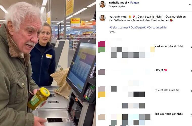 Hunderttausende haben ein Video in den sozialen Netzwerken gesehen, in dem ein Rentner an der SB-Kasse einen Wutanfall bekommt. Doch damit stimmt etwas nicht.