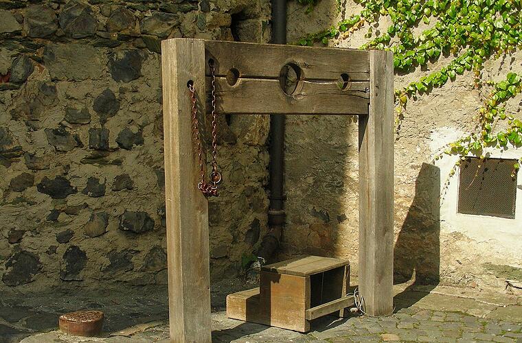 Auch Folter war üblich, um ein Geständnis zu erhalten. Hier reichte die Bandbreite von Daumenschrauben über die Streckbank bis hin zu allerlei Möglichkeiten, um den Delinquenten oder die Delinquentin zum Reden zu bringen. Wie man sich unschwer vorstellen kann, wird irgendwann jeder alles gestehen, um der Qual ein Ende zu setzen. Es lag am Fragensteller, ob er einem glaubte.