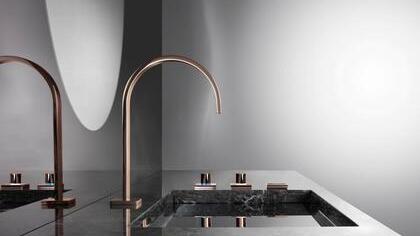 Kupfer, bisher als Werkstoff den Rohren in der Wand vorbehalten, ist endgültig im Lebensraum Bad angekommen. Der Shootingstar bei Design- und Einrichtungsobjekten hat es vom Schrankgriff über die Leuchte bis hin zur handgetriebenen Badewanne gebracht.