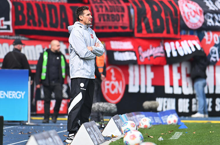 Trainer Miroslav Klose (1. FC Nürnberg) steht am Spielfeldrand. Nürnbergs Trainer Miroslav Klose hat die Krawalle in Dresden vor dem Aufeinandertreffen mit Dynamo scharf kritisiert.
