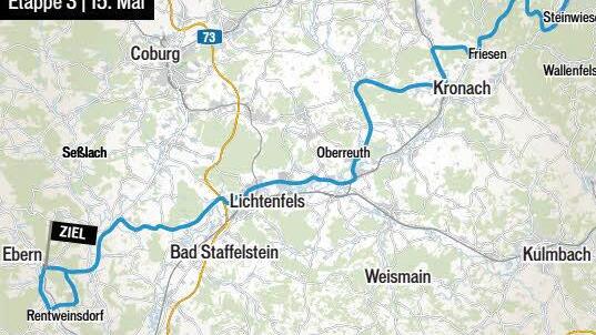 Außerdem stehen drei Sprintwertungen auf dem Programm, unter anderem in Mitwitz/Steinach und kurz vor dem Ziel auf einer Runde in und um Ebern. Diese Etappe hat auch einen zeitgeschichtlichen Aspekt, denn in Mödlareuth, gut 45 Kilometer nach dem Start, passieren die Fahrer ein Symbol für die ehemalige deutsch-deutsche Grenze - Mahnmal an eine Zeit, in der viele der Fahrer im Feld noch gar nicht geboren waren.