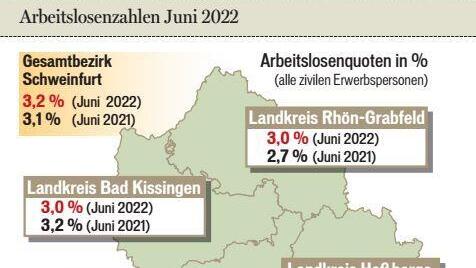 Bad KissingenMehr Arbeitslose im Junibilanz Im Landkreis Bad Kissingen waren 1733 Menschen arbeitslos. Erstmals machen sich die aus der Ukraine Geflüchteten in der Arbeitslosenquote bemerkbar. Doch die Nachfrage nach Arbeitskräften ist weiter hoch. 30.06.2022
