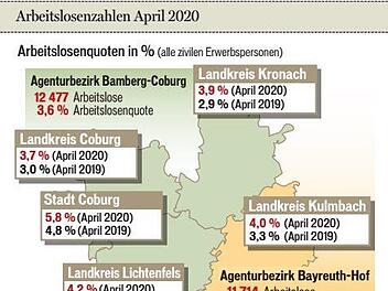 CoburgKurzarbeit536 Anträge bis Ende AprilIn Coburg haben seit Beginn der Coronavirus-Pandemie rund vier von zehn Unternehmen (38 Prozent) Kurzarbeit angemeldet. Das teilt die Gewerkschaft Nahrung-Genuss-Gaststätten (NGG) mit. Die NGG beruft ... 08.05.2020