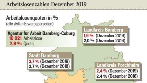 CoburgNur leichte SchwächeWährend sich in der Stadt Coburg nichts verändert hat, ist die Zahl der Arbeitslosen im Landkreis Coburg im Dezember leicht gestiegen. 03.01.2020