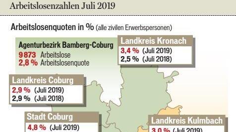CoburgstatistikEs hat sich auf dem Arbeitsmarkt kaum etwas verändertDie Agentur für Arbeit Bamberg-Coburg hat die Arbeitslosendaten für den Monat Juli veröffentlicht. "Die konjunkturelle Eintrübung ist am regionalen Arbeitsmarkt spürbar. Während die Nachfrage bei den ... 31.07.2019