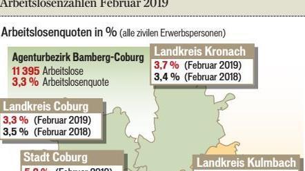 LichtenfelsBilanzErste Frühjahrsboten am ArbeitsmarktAufgrund der schon fast frühlingshaften Temperaturen setzte der Frühjahrsaufschwung im Landkreis Lichtenfels mit ersten Wiedereinstellungen im Baubereich bereits im Februar ein. Die Arbeitslosigkeit s... 01.03.2019